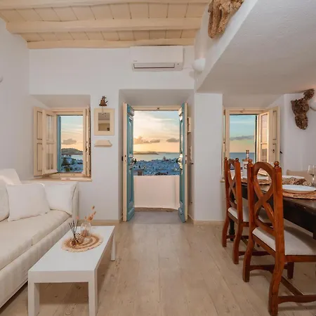 リトル・ヴェニスから550メートルに位置するMykonos Town Cielo Azzurroヴィラは、海の景色を望むテラスがあります。